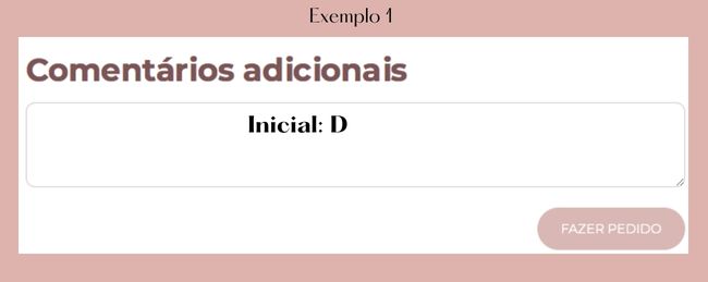 Insira a letra da inicial no final do pedido no campo escrito "Comentário Adicionais ", veja foto com exemplos abaixo: