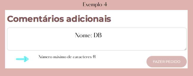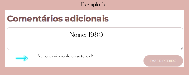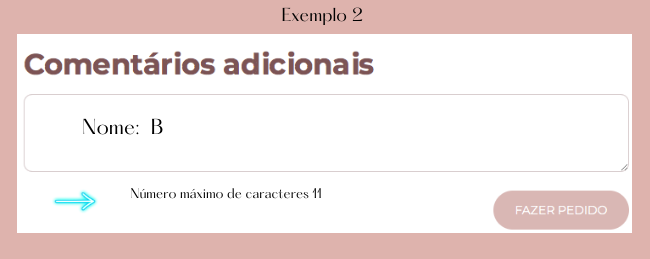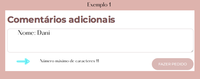 Como incluir as informações como nome, letra, caracteres no pedido?