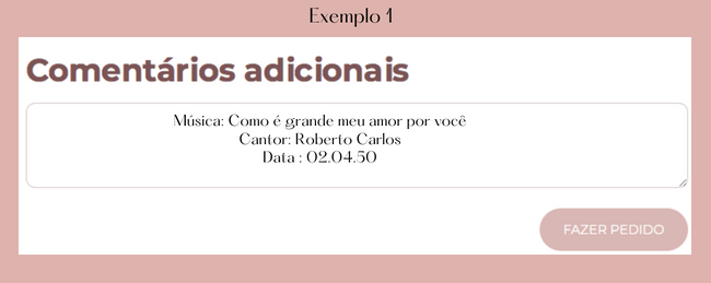 Para nos informar a música e caso queira colocar data, nome ou iniciais você irá colocar no campo escrito